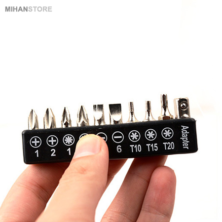 - 10 سر پیچ گوشتی (دو سو، چهار سو، شش گوش و آلن)