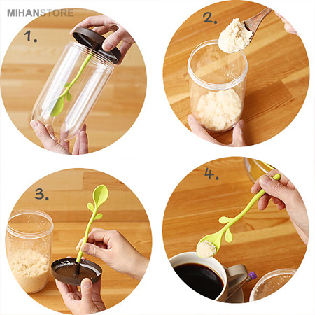 - همراه با قاشق پیمانه به شکل برگ
