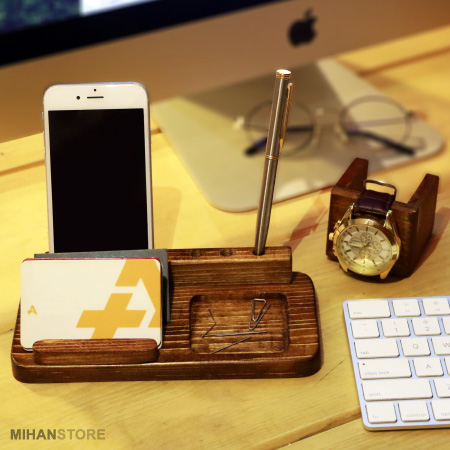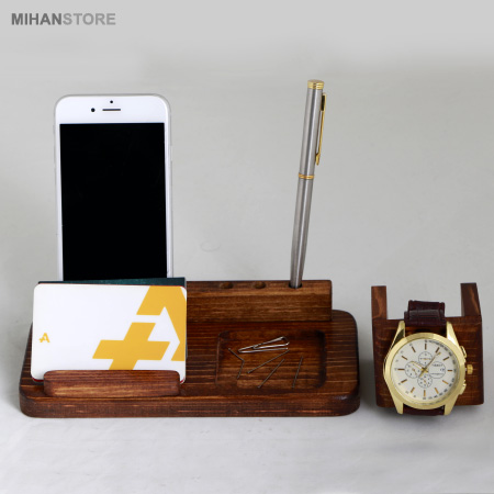میهن استور - خرید پستی ست رومیزی چوبی جا موبایلی و ساعت