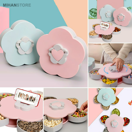 ویژگی خاص اردوخوری چرخشی طرح گل که آن را برای مشتری ها جذاب کرده چرخشی بودن ظرف و پنهان کردن محتوای تنقلات داخل ظرف می باشد. در نگاه اول شما ظرفی فانتزی طرح گل خواهید دید که با چرخاندن سوییچ روی آن به آرامی تنقلات پنهان شده بیرون آمده و جلوه ای جالب و جادویی به محصول میدهد. این اردوخوری جالب چرخشی همچنین دارای یک درب قلبی بازشو روی سوییچ چرخان میباشد که میتوانید با باز کردن آن شیارهایی برای نگهداری گوشی وجود دارد که میتوانید گوشیتان را به حالت ایستاده برای تماشای فیلم روی آن قرار دهید. می توانید از اردوخوری چرخشی طرح گل برای پذیرایی انواع مواد خوراکی در صبحانه و عصرانه استفاده کنید. بدلیل زیبایی انحصاری این ظروف و دوام و کیفیت مناسب آن شما می توانید از این ظروف جذاب را برای پذیرایی در هتل ها، رستوران، سلف سرویس ها و … نیز استفاده کنید.