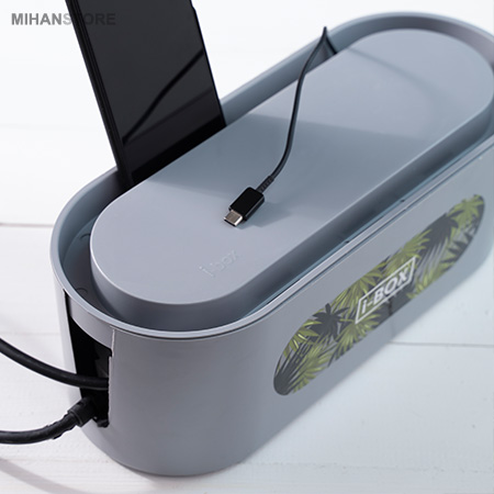 این محصول بدنه‌ای از جنس پلاستیک ABS دارد و به‌صورتی تولید شده که در برابر شلعه و خط و خش و ضربه مقاوم است. در زیر آن پایه‌هایی  قرار گرفته که باعث می‌شود در مواقعی که جعبه نگهدارنده روی میز یا زمین قرار می‌گیرد، فاصله اش با زمین حفظ شده و از طریق شیار های زیر هوا در جریان باشد. طول این محصول 330 میلی‌متر، عرض آن 127 و ارتفاعش 114.3 میلی‌متر است. شما با استفاده از این جعبه می‌توانید کابل‌های رها شده زیر میز، روی زمین یا کنار دیوار را نظم داده و همه‌ی آن‌ها را در یک محل جمع کنید. این محصول با انواع شارژرها، و چند راهی‌های برق که سایز نرمال دارند مناسب است و با آن‌ها سازگاری دارد. روی بدنه‌ی آن  شکاف برای عبور کابل قرار دارد که شما می‌توانید با استفاده از آن‌ها، کابل‌های خود را از دو طرف بدنه عبور داده و از آن‌ها استفاده کنید.درپوش این محصول به صورت جذاب دارای فرو رفتگی ای است که 150 میلیمتر با عمق 200 میلیمتر جای امنی برای قرار دادن گوشی برای شارژ است.میتوانید مازاد کابلها را جمع کرده و داخل جعبه قرار دهید تا از رها شدن انها و شلوغی جلوگیری کنید.کودکان و حیوانات خانگی به سمت پریزهای برق کشیده می شوند. آنها تمایل دارند با دوشاخه بازی کنند و این می تواند خطرناک باشد. جعبه مدیریت کابل I-BOX برای پنهان کردن این کابل ها و ایمن سازی خانه برای افراد کمی مفید خواهد بود.بنابراین،جعبه های مدیریت کابل نه تنها زندگی شما را آسان می کنند ، بلکه آن را نیز ایمن می کنند.