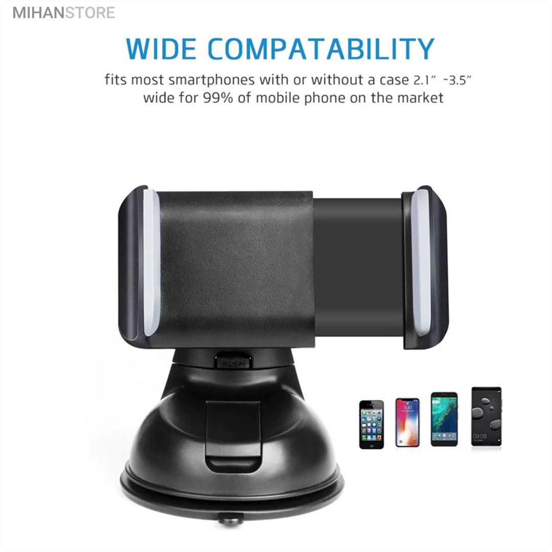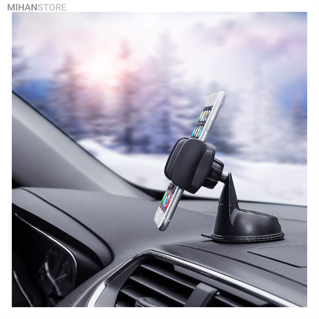پایه نگهدارنده گوشی موبایل با بادکش های لاستیکی بسیار قوی قابلیت چسبندگی برروی هر سطحی از جمله داشبورد خودرو، شیشه جلویی اتومبیل، میز کار و غیره را خواهد داشت. جنس بدنه این هولدر از پلاستیک بوده و در قسمت گیرهای از پوشش سیلیکون برای جلوگیری از لیز خوردن گوشی موبایل استفاده شده است. با استفاده از هولدر موبایل ذکر شده امکان چرخش 360 درجه و یا قرار گرفتن در حالت عمودی و افقی امکان پذیر میباشد، که در هنگام رانندگی آسودگی خاطر بالایی برای راننده فراهم میآورد. این پایه نگهدارنده گوشی موبایل برای گوشی های هوشمند با سایز حداکثر 6 اینج مناسب میباشد. پایه سیلیکونی که به کمک بادکشی بودن به سطوح وصل میشود جوری که طراحی شده که شما میتوانید بارها پایه را جدا کنید و جابجا کنید و مثل روز اول با همان مقاومت به سطح وصل شود و اگر در مجاورت گردو خاک چسبندگی سیلیکون کم شد فقط کافیست پایه را بشورید و استفاده کنید.