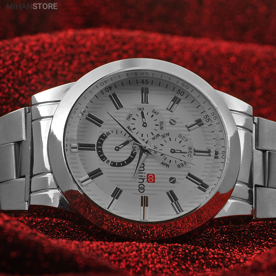 ساعت مچی مردانه MIHOO TIGER یک ساعت شیک فلزی با بند بافت فلزی با رنگ نقره ای در رده ساعت کلاسیک اسپرت می باشد و تکمیل کننده استایل خاص شما خواهد بود. این ساعت طرح 3 موتوره می باشد و بسیار خوش ساخت و با کیفیت تولید شده است، این محصول همراه با یک جعبه شکیل ارسال خواهد شد.