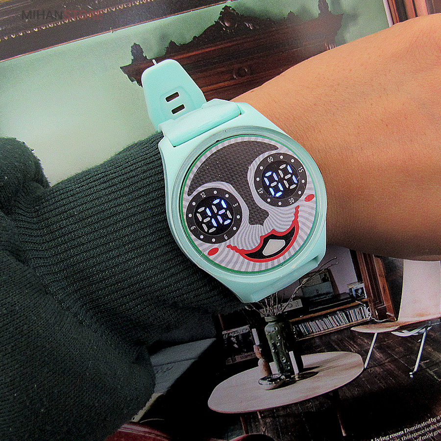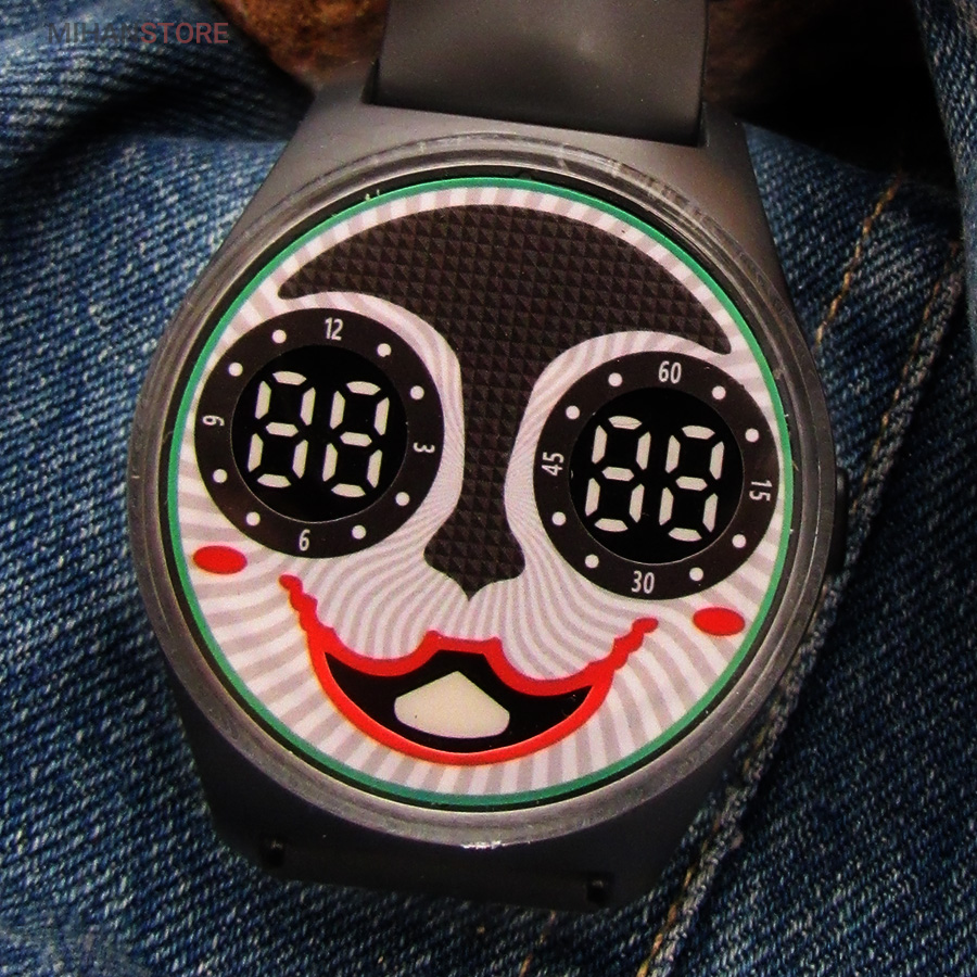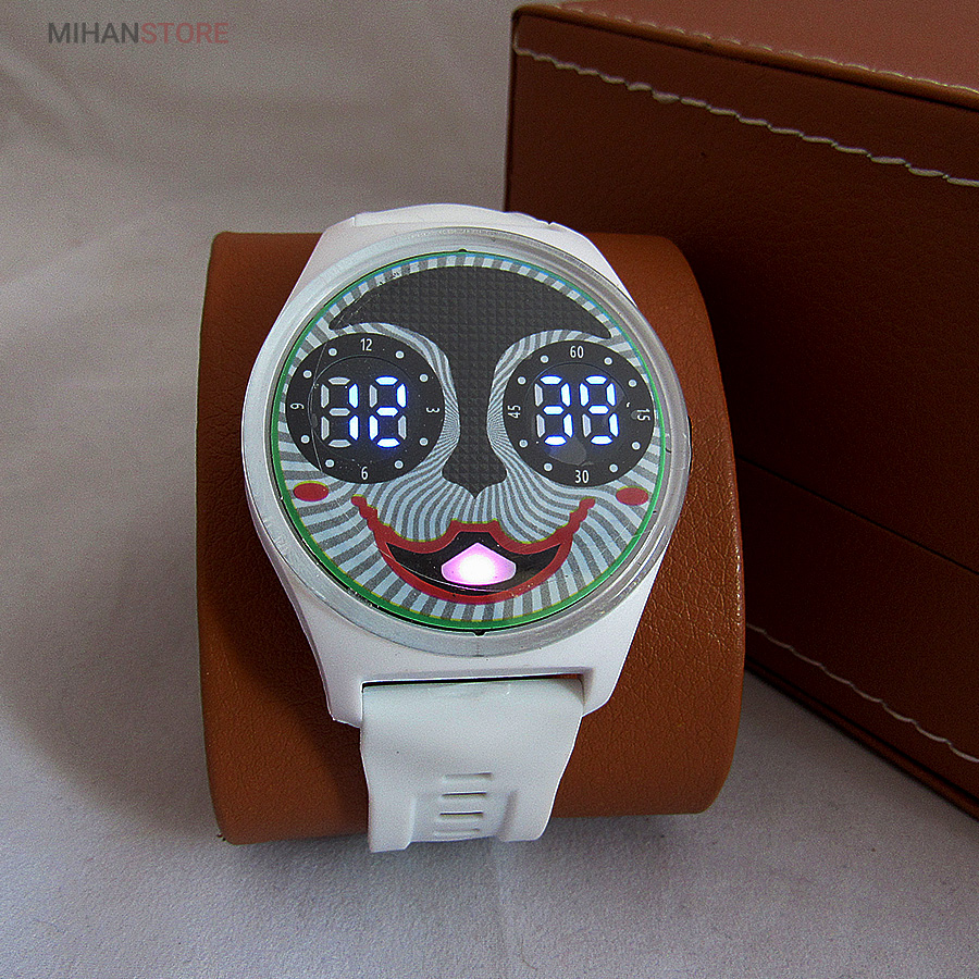 ساعت ضدآب JOKER دارای صفحه ی نمایش دیجیتالی بوده و صفحه بسیار زیبا و شفاف که با فشار دادن دکمه کنار ساعت صفحه نمایش به شکلی زیبا پدیدار می شود، همزمان با روشن شدن صفحه، چراغ های LED آبی رنگ به کار رفته در داخل صفحه قابل درک خواهد بود و ساعت را به نمایش در می آورد، این ساعت مچی دارای تقویم روز شمار نیز می باشد که به صورت دیجیتالی به نمایش پدیدار می شود. این ساعت ضد آب است و در هنگام استحمام میتوانید با خیال راحت از این ساعت استفاده کنید. این ساعت با بند های سیلیکونی در 5 رنگ جذاب که مناسب سلیقه همه هست ارایه شده و هنگام ثبت سفارش می توانید رنگ مورد نظر را انتخاب کنید.