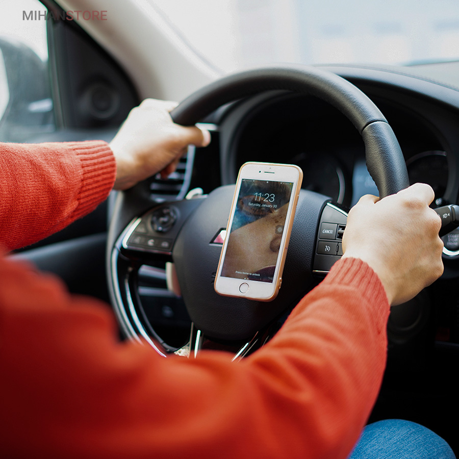 این هولدر یک صفحه کوچک است که به پشت گوشی متصل شده و صفحه دیگر بر روی فرمان ماشین یا ... متصل می‌شود که نحوه اتصال این صفحات به یکدیگر توسط چفت و بست خار مانند صورت می‌گیرد. این مدل نگهدارنده تلفن همراه در عین سادگی و اشغال فضای بسیار کم از انجاییکه روی وسط فرمان خودرو نصب می شود و گوشی دقیقا مقابل چشم راننده می باشد باعث تمرکز بیشتر راننده می شود، هولدر موبایل روی فرمان اسپینری قابلیت چرخشی دارد که این موضوع باعث می شود تلفن همراه شما در حالت ثابت قرار بگیرد و با چرخش فرمان نچرخد.