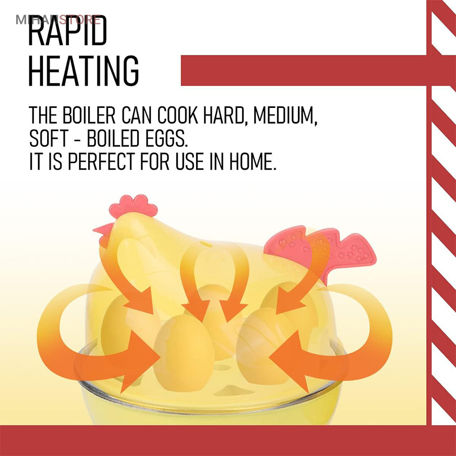 تخم مرغ پز برقی طرح مرغ یکی از جدیدترین و بهترین ابزار برقی مخصوص پخت تخم مرغ می باشد که با استفاده از آن می توانید تخم مرغ را در حالتهای مختلف آب پز کنید از عسلی تا پخت کامل که هم در وقت خود در حین آشپزی صرفه جویی کنید و هم در مصرف انرژی. این تخم مرغ پز بصورت فانتزی در طرح مرغ تولید شده است و با استفاده از برق شهری کار میکند و کمترین مصرف انرژی را نیز داردیک قالب مخصوص نگهدارنده تخم مرغ می باشد که برای پخت تخم مرغ در حالت آب پز و یا بخار پز بسیار مناسب می باشد.تخم مرغ پز برقی یک ابزار جالب و بسیار کاربردی در منزل و آشپزخانه می باشد که می تواند بسیار کارا بوده و آشپزی را برای شما راحت تر کند.