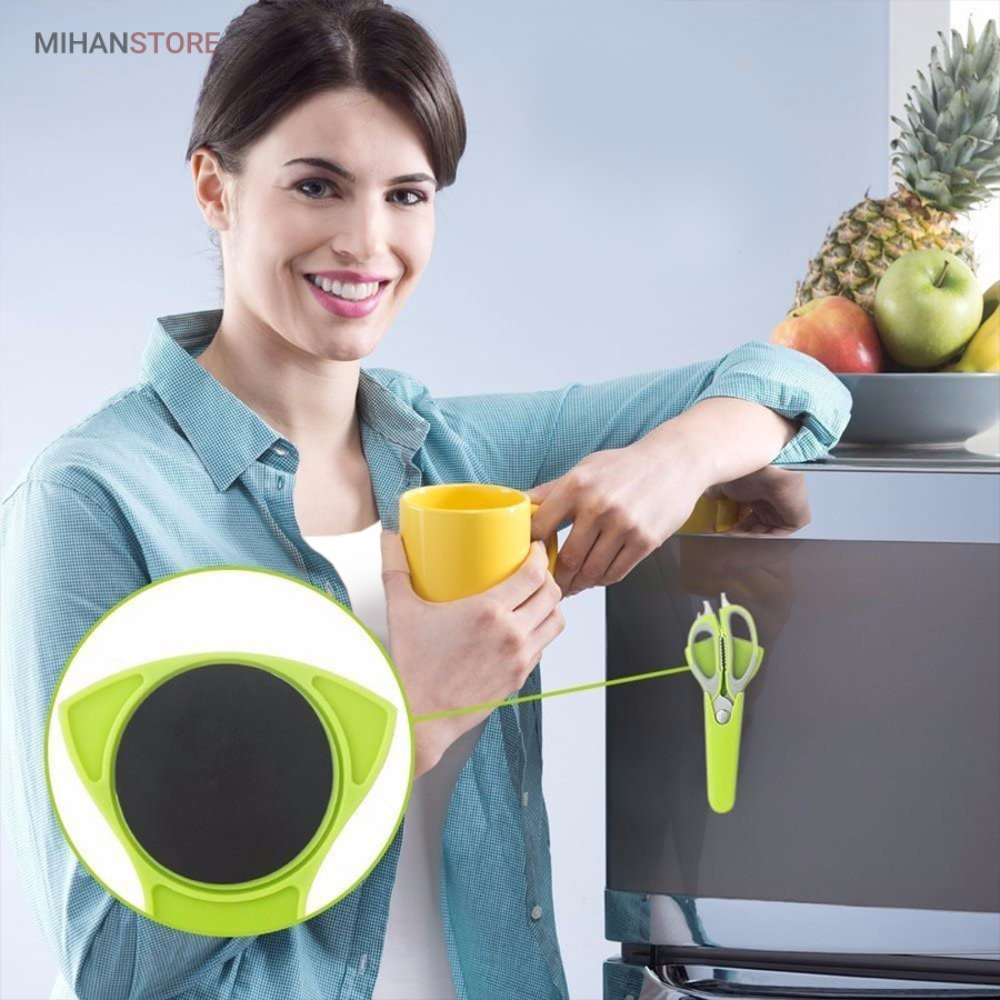 قیچی 8 کاره آشپزخانه یک قیچی منحصر به فرد است که با طراحی فوق العاده هوشمندانه ای که دارد می تواند چندین کار سنگین را با هم انجام دهد. در نگاه اول این محصول یک قیچی با تیغه های بسیار تیز که تیغه های تیز استیل ضدزنگ با لبه های دندانه دار برای جلوگیری از لغزش در هنگام برش میباشد میتوان از آن برای برش نان, میوه و سبزیجات و حتی مرغ و گوشت استفاده کرد اما پس از جدا کردن 2 تیغه ی این محصول از یکدیگر از کارایی بسیار بالای آن شگفت زده خواهید شد.اولین کاربرد هریک از تیغه ها استفاده به عنوان چاقویی بسیار تیز و کاربردی میباشد. در انتهای یکی از دسته های این قیچی قطعه ای فلزی قرار داده شده که میتوان از آن به عنوان درب باز کن , پیچ گوشتی 2 سو , لگه گیر سیب زمینی و حتی برای ایجاد سوراخ بر روی پوسته ی آهکی تخم مرغ استفاده کرد. از دیگر کاربردهای این قیچی میتوان به وجود پوست کن تیز بر روی یکی از تیغه ها اشاره کرد. ازویژگی های بسیار کاربردی این محصول تبدیل شدن یکی از تیغه ها به فلس گیر ماهی است که با چندحرکت به راحتی میتوان این کار را انجام داد.اما مهم ترین ویژگی این محصول که سبب تمایز آن با کالاهای مشابه میگردد خاصیت مگنتی این قیچی میباشد که به واسطه ی آن میتوانید قیچی را بر روی سطوح مختلف مانند یخچال نصب کرده و به این ترتیب قیچی بدون خطر برای فرزندانتان در دسترس شما باشد.
