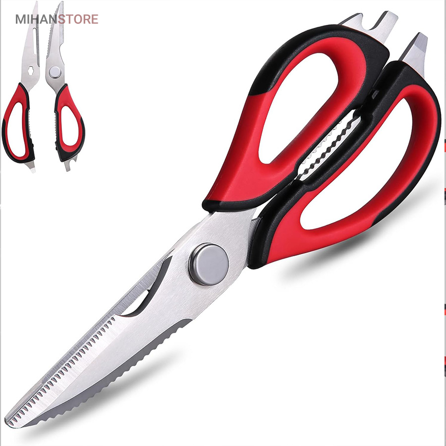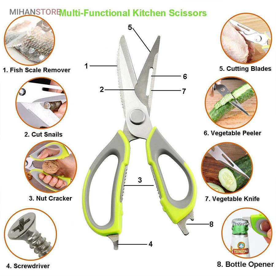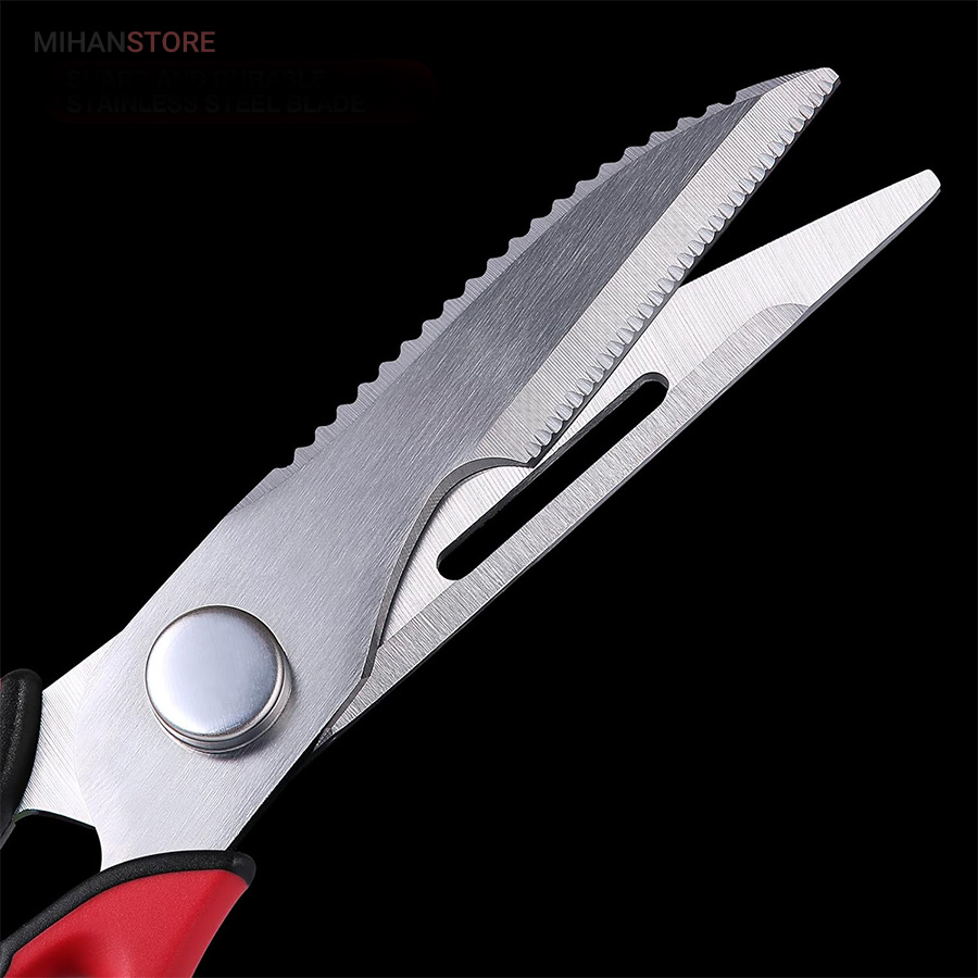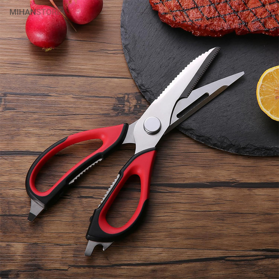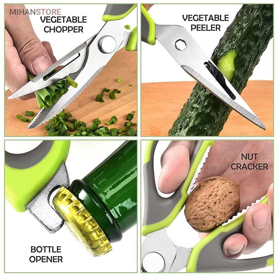 هم قیچی، هم بازکن، هم کابل کش و هم چاقو! این قیچی جادویی 8 کاره باورنکردنی در هر زمینه ای مفید خواهد بود. محصولی کاملاً جدید که باید در کار آشپزخانه خود داشته باشید و کار شما را آسانتر میکند و نمیتوانید نزدیک آن باشید. در آشپزخانه می توانیم هنگام سرو مرغ، سبزیجات را خرد کنیم یا به راحتی استخوان ها را برش دهیم. می توانید از آن به عنوان کرکر فندقی یا گردو استفاده کنید. به راحتی می توانید درب بطری های خود را باز کنید. به طور خلاصه، به لطف قیچی جادویی 8 کاره، کاری که در زندگی روزمره انجام می دهید اکنون کاربردی تر شده است. قابل شستشو در ماشین ظرفشویی می باشد.