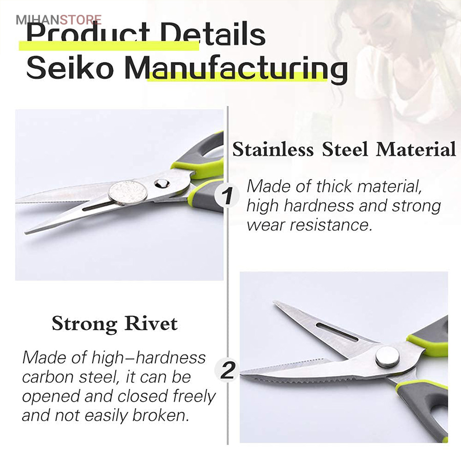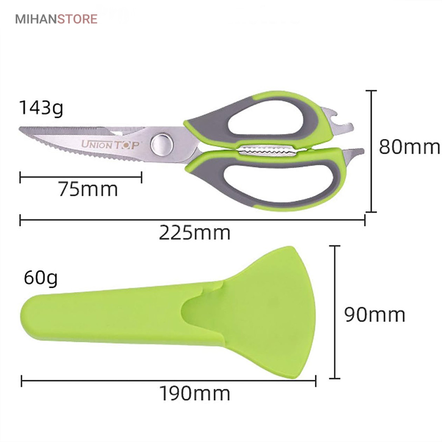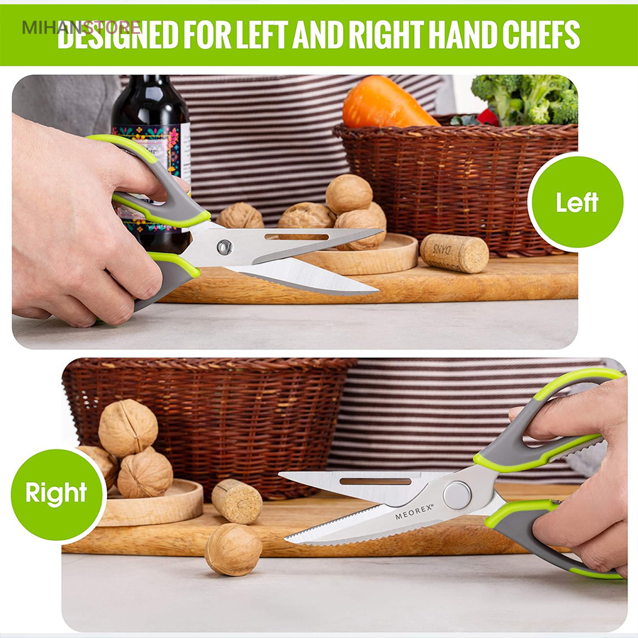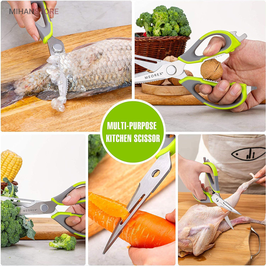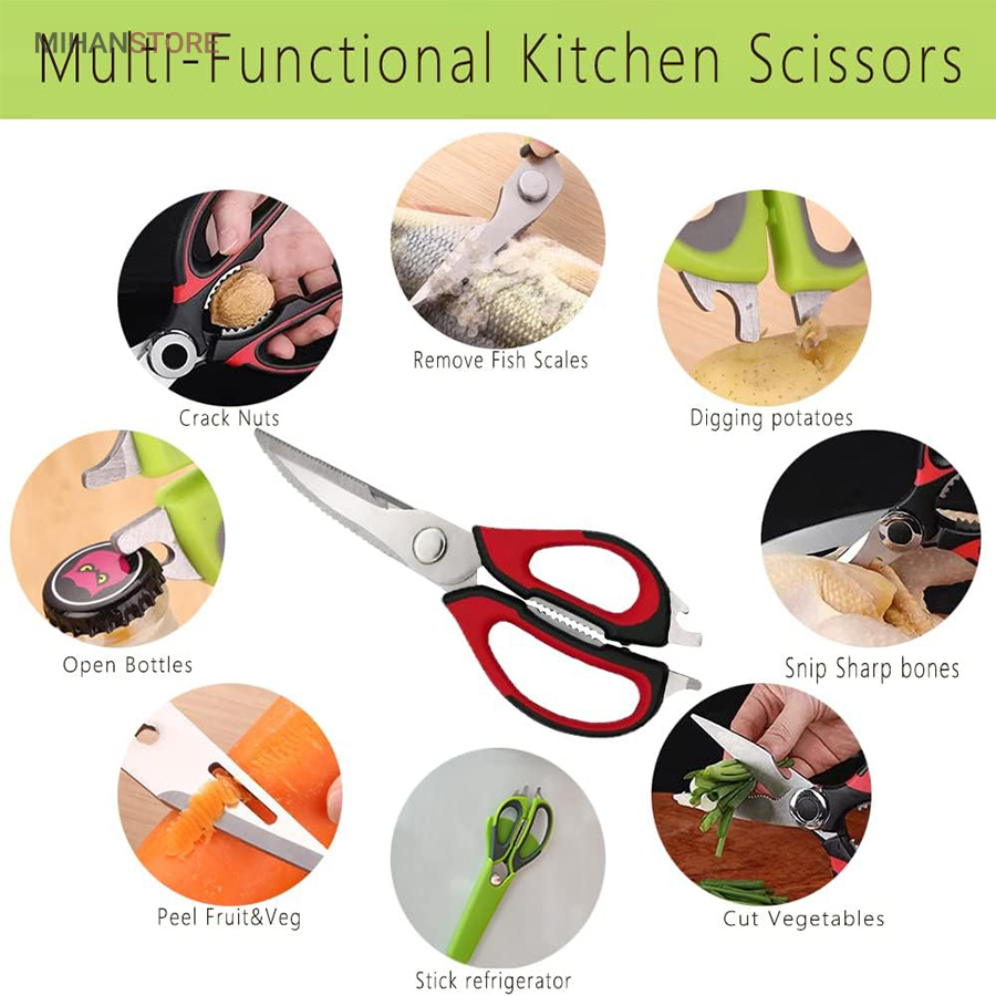هم قیچی، هم بازکن، هم کابل کش و هم چاقو! این قیچی جادویی 8 کاره باورنکردنی در هر زمینه ای مفید خواهد بود. محصولی کاملاً جدید که باید در کار آشپزخانه خود داشته باشید و کار شما را آسانتر میکند و نمیتوانید نزدیک آن باشید. در آشپزخانه می توانیم هنگام سرو مرغ، سبزیجات را خرد کنیم یا به راحتی استخوان ها را برش دهیم. می توانید از آن به عنوان کرکر فندقی یا گردو استفاده کنید. به راحتی می توانید درب بطری های خود را باز کنید. به طور خلاصه، به لطف قیچی جادویی 8 کاره، کاری که در زندگی روزمره انجام می دهید اکنون کاربردی تر شده است. قابل شستشو در ماشین ظرفشویی می باشد.