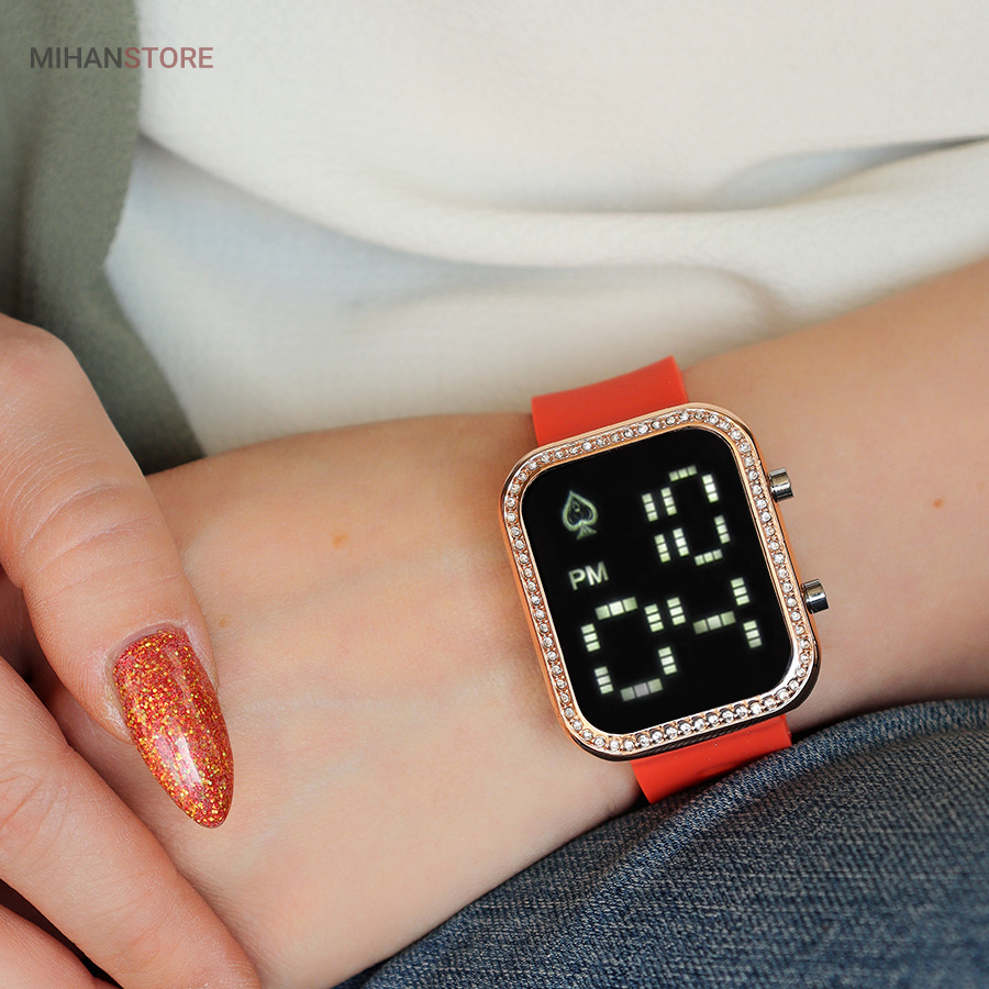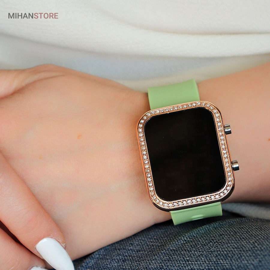 ساعت مچی از قدیم تا امروز یکی از ابزار های سنجش زمان بوده و هست اما تفاوتی که میتوانیم در ساعت مچی های امروزه حس کنیم، اهمیت وجود آنها در استایل هر شخص است. اگر که شما کمی به نوع و سبک لباس پوشیدنتان اهمیت میدهید و میخواهید در نگاه اطرافیان یک شخص ایده آل باشید، پس باید ساعت مچی را به عنوان بخشی از استایل تان بدانید و هنگام خرید ساعت مچی به سبک استایل خودتان توجه کنید. ساعت مچی بیانگر دقت و ارزشی است که شما به استایل خود قائل هستید.این محصول یکی از جذابترین ساعت های ال ای دی موجود در بازار است که طرح اپل واچ طراحی شده است. صفحه نمایشی و مستطیل شکل ساعت در ابعاد 33 × 40 میلی‌متر طراحی شده و ضخامت آن در قسمت بدنه 10 میلی‌متر است.نگین های زیبا طراحی شده دور بدنه ساعت جذابیت آن را دو چندان کرده. این ساعت دارای وزن سبک است و سنگینی زیادی روی مچ دست شما ندارد.صفحه بسیار زیبا و شفاف که با لمس دکمه کنار ساعت صفحه نمایش به شکلی زیبا پدیدار میشود، مزیت جالب این ساعت با نمونه های مشابه در صفحه نمایش آن است که اعداد پنل دیجیتالی ندارند و دارای نمایشگر جذاب فول اسکرین با اعداد بزرگ و شفاف است، بند این ساعت سلیکونی است و قفل آن سگکی طراحی شده که مناسب هر سایزی است. این ساعت همراه با جعبه کادویی شکیل ارسال میشود در رنگ های متنوع و جذاب عرضه شده است که در سبد خرید می توانید رنگ مورد نظر را انتخاب کنید.