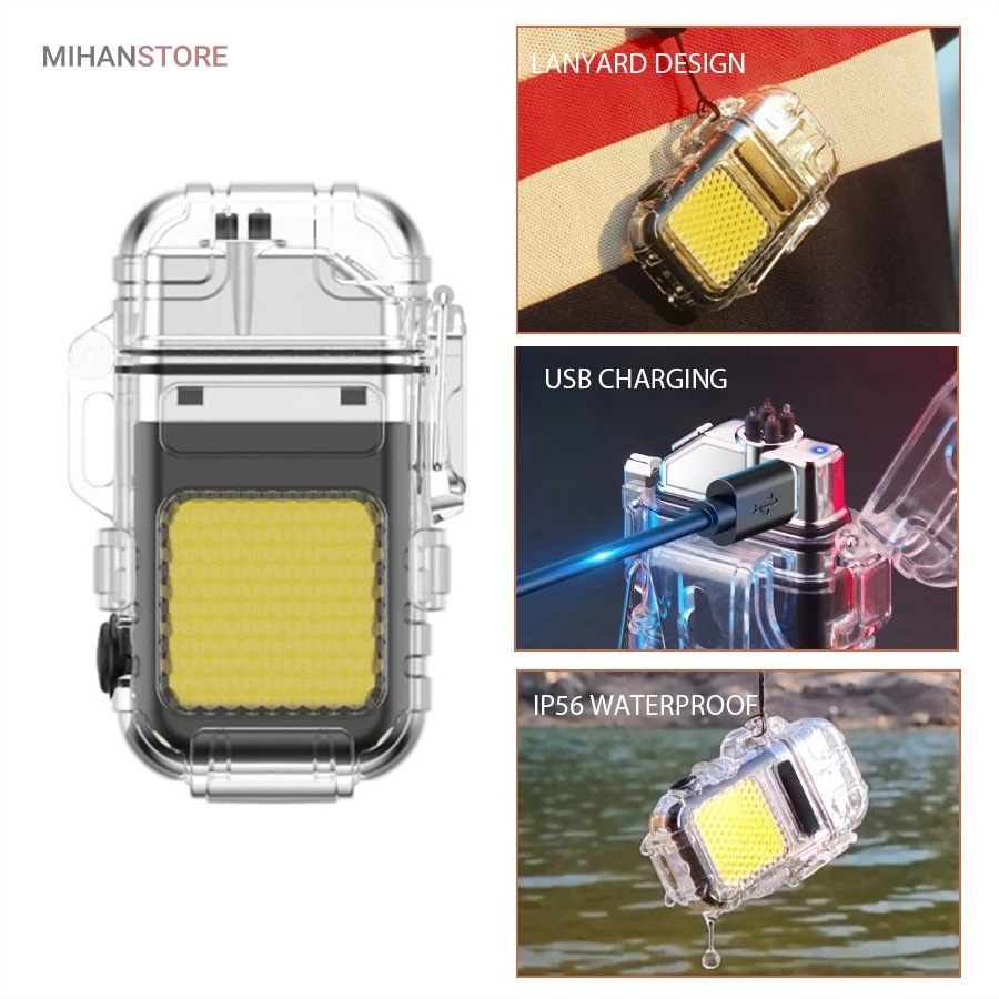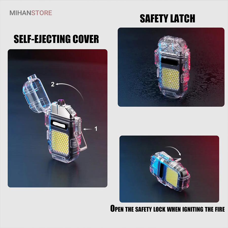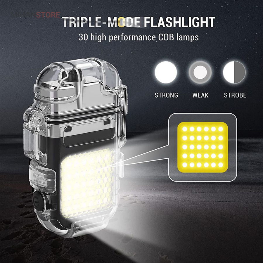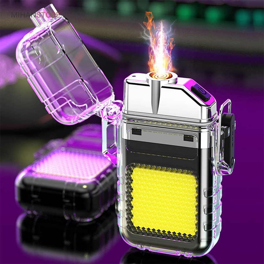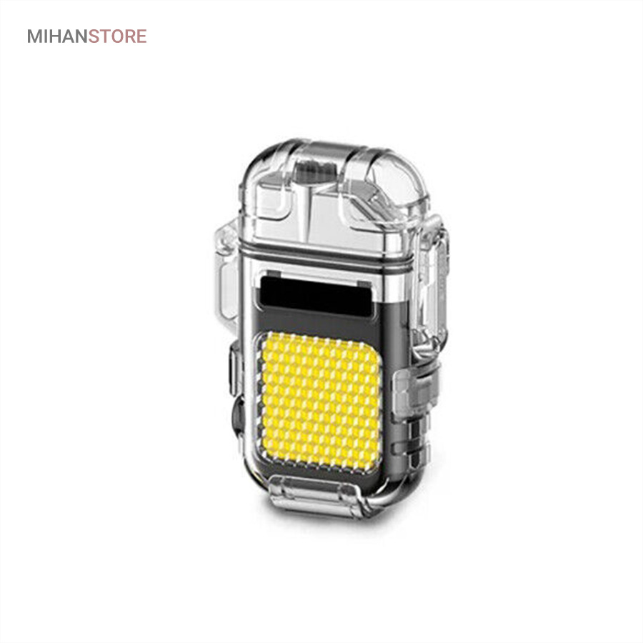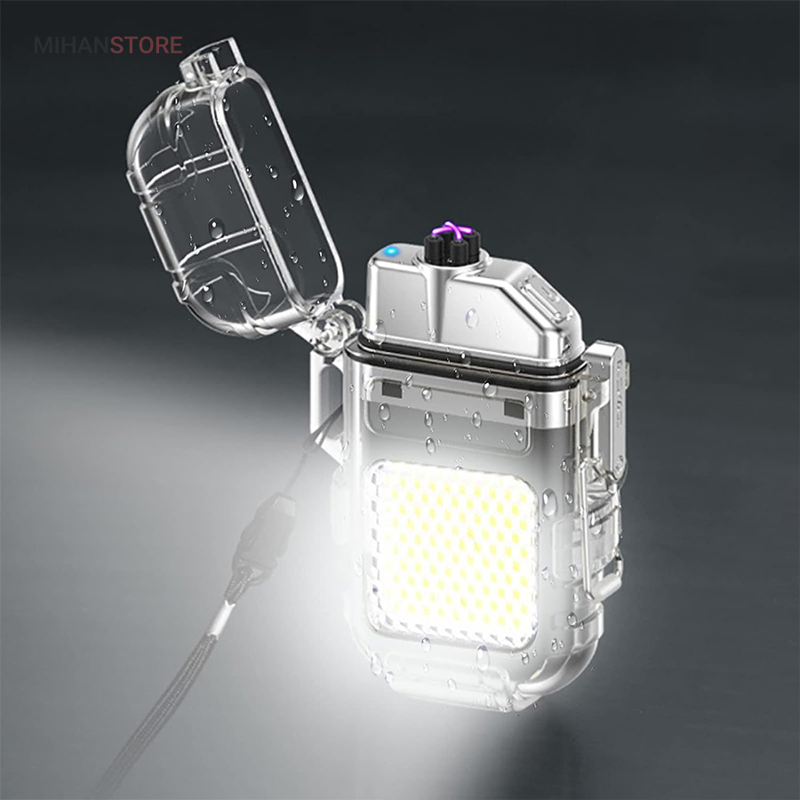 این مدل فندک بدون شعله است و نیازی به سوخت (گاز) ندارد. به همین خاطر استفاده از آن بسیار راحت است و کاربرد بیشتری نسبت به فندک معمولی دارد. در واقع منشا تولید حرارت در فندک پلاسما شبیه به قوس الکترونیک است؛ با حرارت پایین تر، که توانایی بالاتری در روشن کردن دارد و در هنگام وزش باد نیز قابل استفاده است و خاموش نمی‌شود. فندک الکتریکی (شارژی) چراغ قوه دار هدیه ای ارزنده و زیبا برای افرادی که دنبال محصولات لاکچری هستند. ویژگی منحصر به فرد این فندک ضدآب بودن آن است. یک پوشش پلاستیک محکم شفاف روی کل بدنه محصول قرار گرفته که نه تنها زیر باران، بلکه داخل آب (استخر، دریا و …) نیز قابل استفاده است. شما با خرید این محصول جذاب نه تنها صاحب یک فندک کاربردی خواهید شد بلکه یک چراغ قوه کوچک جیبی را نیز از آن خود خواهید کرد! روی بدنه این فندک یک چراغ COB سه حالته تعبیه شده که با دکمه پاور بغل آن روشن و خاموش می‌شود. (حالت نور کم، نور چشمک زن و نور زیاد)این فندک پلاسما یک فندک ضد آب و ضد باد است که می توانید در مواقع اضطراری به آن اعتماد کنید. روزهایی که باید نگران خشک نگه داشتن کبریت ها یا خاموش شدن شعله فندک های معمولی باشید، گذشته است. فندک الکتریکی (شارژی) چراغ قوه دار می تواند به طور مداوم قوس پلاسمای آتش را حفظ کند، حتی از حین بادهای 80 مایل در ساعت. با یک قاب بیرونی بادوام، مهر و موم حلقه فلزی و یک قفل، دیگر نگران ورود آب و خراب شدن این فندک قوس الکترونیک نخواهید بود. صرف نظر از اینکه از آن برای راه‌اندازی آتش در حیاط خلوت، کمپینگ یا چیزهای ضروری تر مانند شرایط بقا یا اضطراری استفاده می کنید، یک فندک قابل اعتماد خواهید داشت که می تواند در حال حرکت نیز شارژ شود.