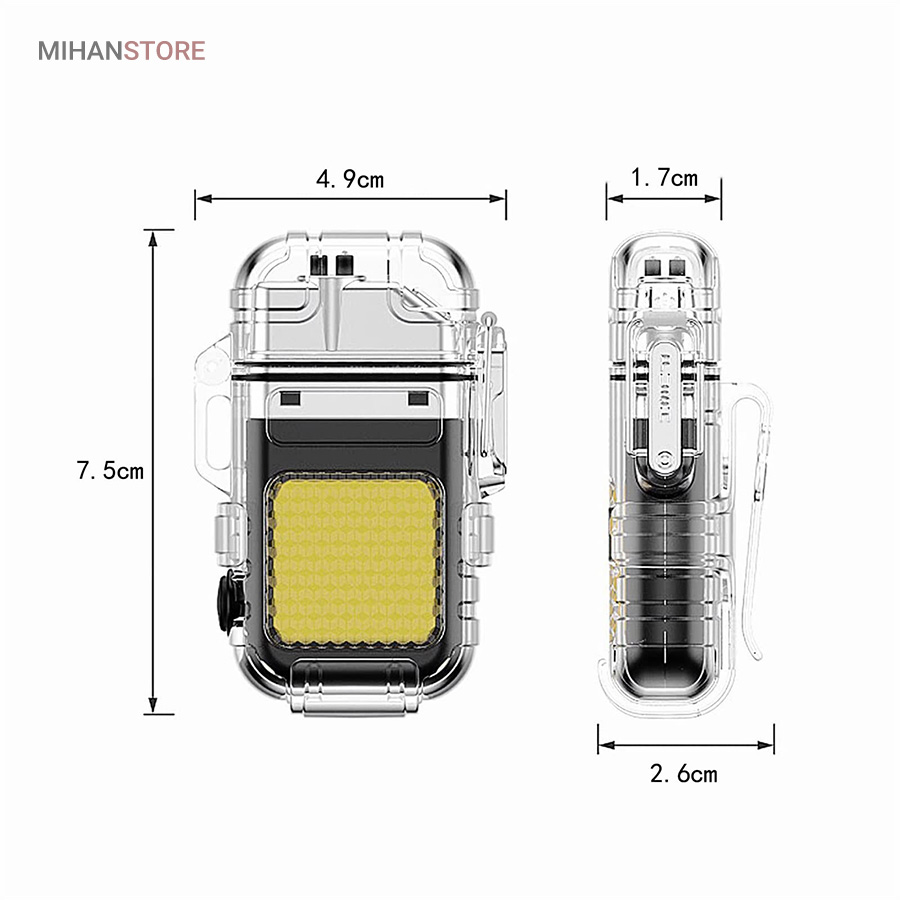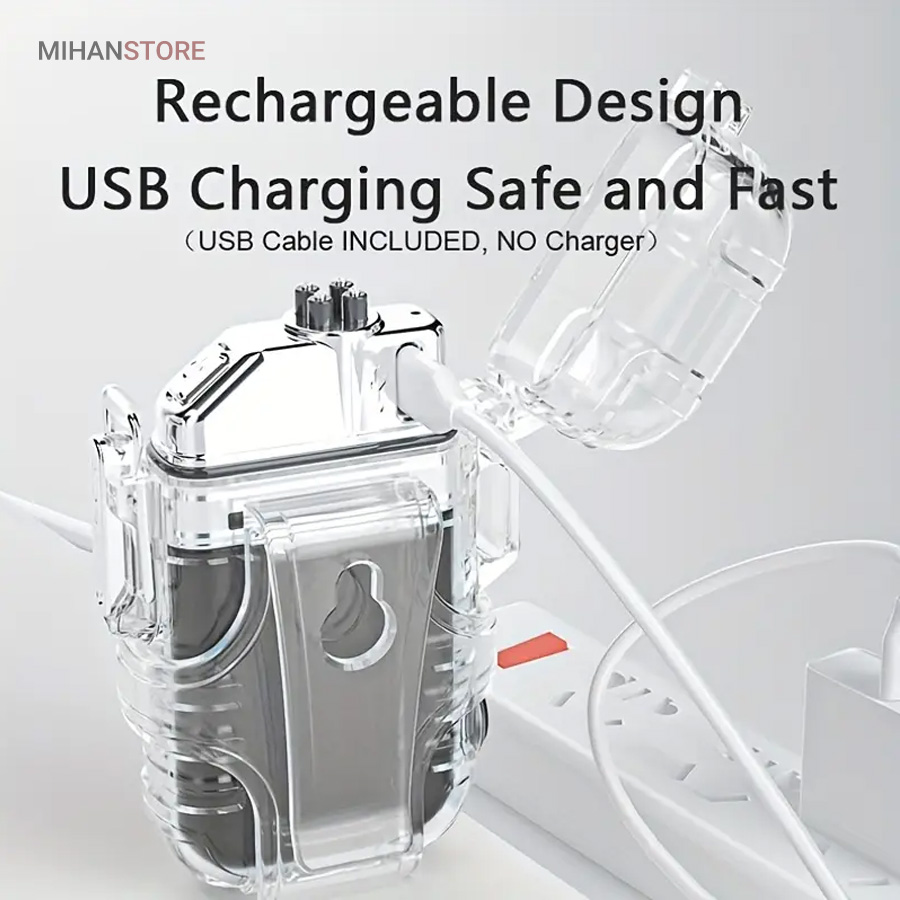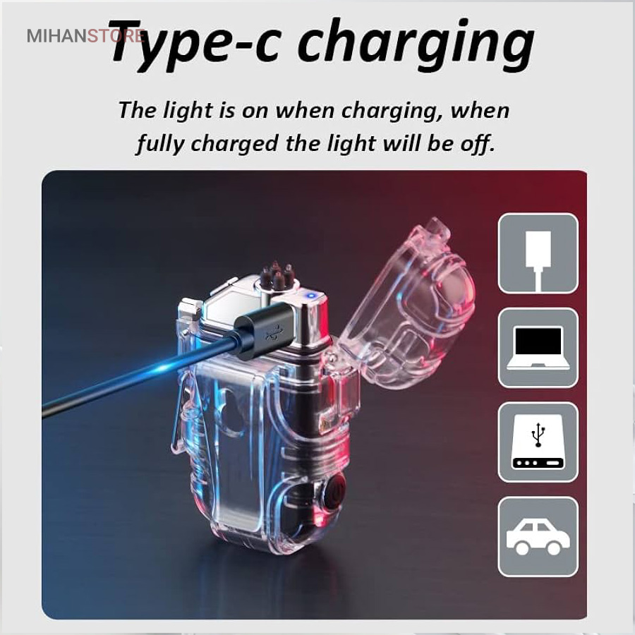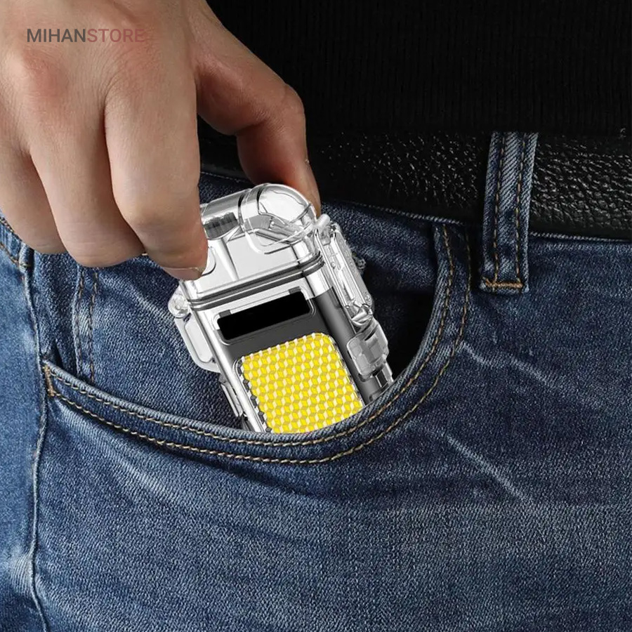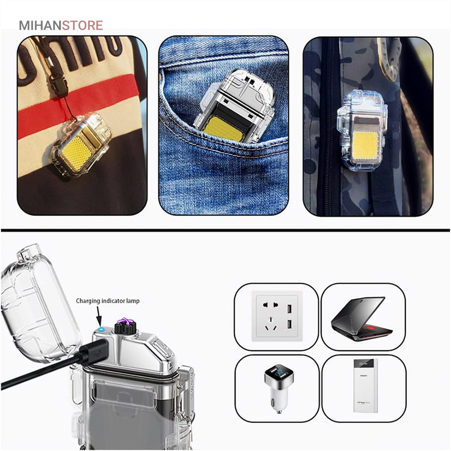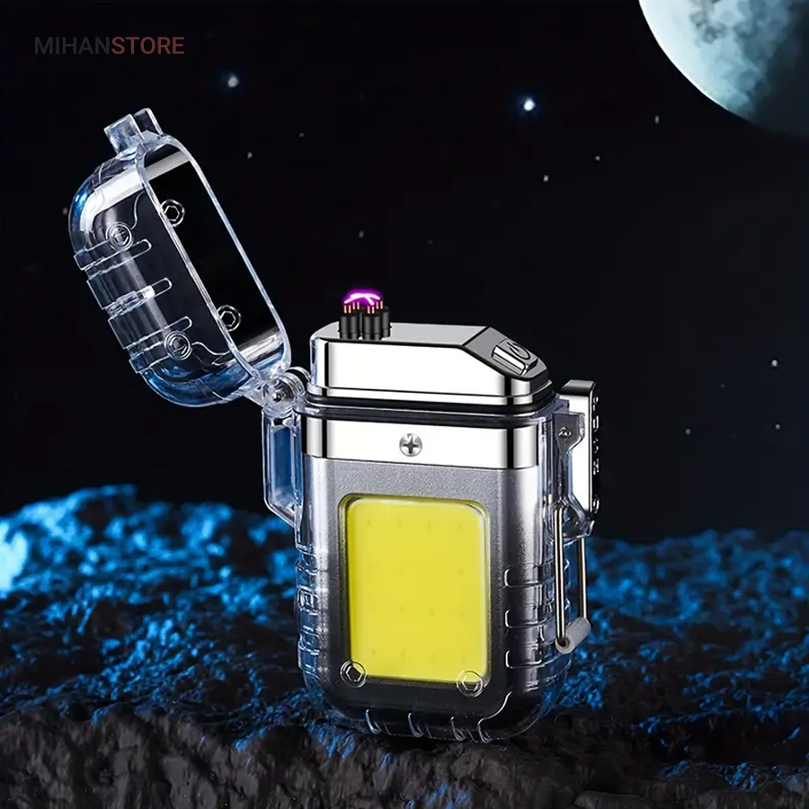 این مدل فندک بدون شعله است و نیازی به سوخت (گاز) ندارد. به همین خاطر استفاده از آن بسیار راحت است و کاربرد بیشتری نسبت به فندک معمولی دارد. در واقع منشا تولید حرارت در فندک پلاسما شبیه به قوس الکترونیک است؛ با حرارت پایین تر، که توانایی بالاتری در روشن کردن دارد و در هنگام وزش باد نیز قابل استفاده است و خاموش نمی‌شود. فندک الکتریکی (شارژی) چراغ قوه دار هدیه ای ارزنده و زیبا برای افرادی که دنبال محصولات لاکچری هستند. ویژگی منحصر به فرد این فندک ضدآب بودن آن است. یک پوشش پلاستیک محکم شفاف روی کل بدنه محصول قرار گرفته که نه تنها زیر باران، بلکه داخل آب (استخر، دریا و …) نیز قابل استفاده است. شما با خرید این محصول جذاب نه تنها صاحب یک فندک کاربردی خواهید شد بلکه یک چراغ قوه کوچک جیبی را نیز از آن خود خواهید کرد! روی بدنه این فندک یک چراغ COB سه حالته تعبیه شده که با دکمه پاور بغل آن روشن و خاموش می‌شود. (حالت نور کم، نور چشمک زن و نور زیاد)این فندک پلاسما یک فندک ضد آب و ضد باد است که می توانید در مواقع اضطراری به آن اعتماد کنید. روزهایی که باید نگران خشک نگه داشتن کبریت ها یا خاموش شدن شعله فندک های معمولی باشید، گذشته است. فندک الکتریکی (شارژی) چراغ قوه دار می تواند به طور مداوم قوس پلاسمای آتش را حفظ کند، حتی از حین بادهای 80 مایل در ساعت. با یک قاب بیرونی بادوام، مهر و موم حلقه فلزی و یک قفل، دیگر نگران ورود آب و خراب شدن این فندک قوس الکترونیک نخواهید بود. صرف نظر از اینکه از آن برای راه‌اندازی آتش در حیاط خلوت، کمپینگ یا چیزهای ضروری تر مانند شرایط بقا یا اضطراری استفاده می کنید، یک فندک قابل اعتماد خواهید داشت که می تواند در حال حرکت نیز شارژ شود.