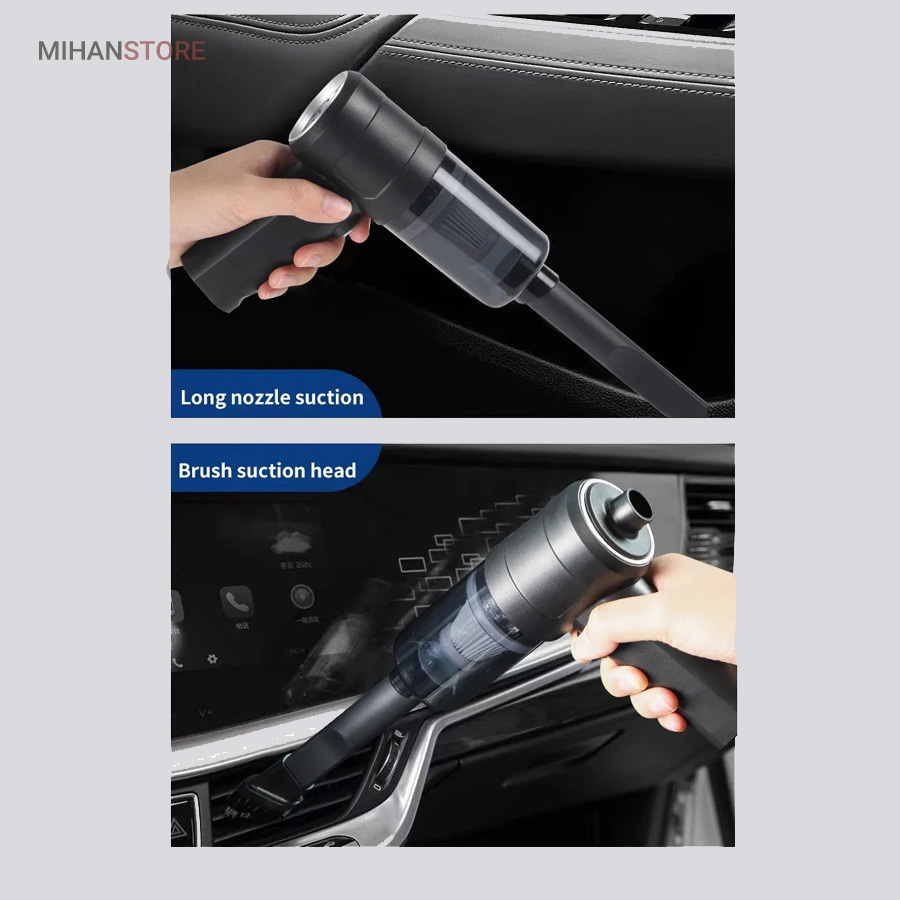 مینی جارو برقی فندکی خودرو دارای دو سری می باشد ، یک سری باریک و بلند برای تمیز کردن فضاهای دور از دسترس و تنگ و یک سری برای تمیز کردن قسمت هایی که منافذ ریز دارند و حالت بدون سری مناسب جمع کردن زباله های درشت تر می باشد یکی از قابلیت های بسیار خوب این محصول این است که جارو ها دو کاره می باشند یعنی هم حالت مکندگی را دارد هم حالت دمنده که می می توانید به راحتی استفاده نمایید.
