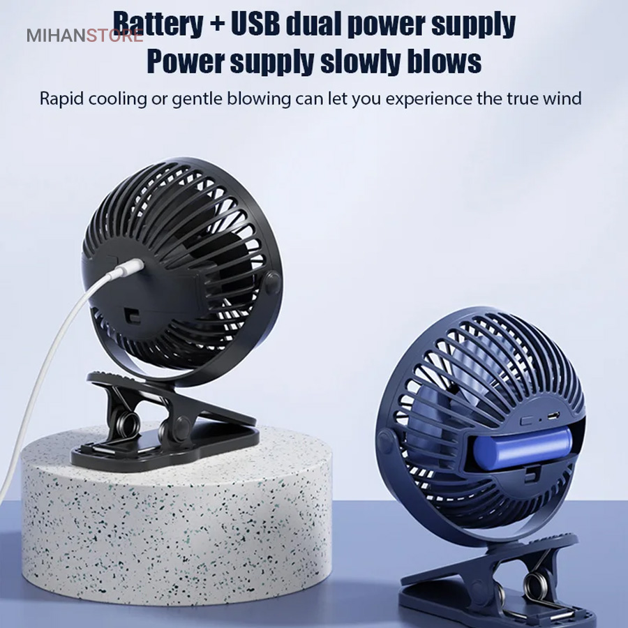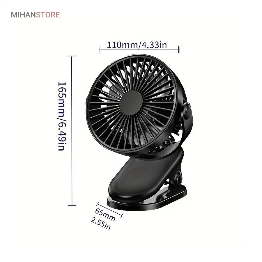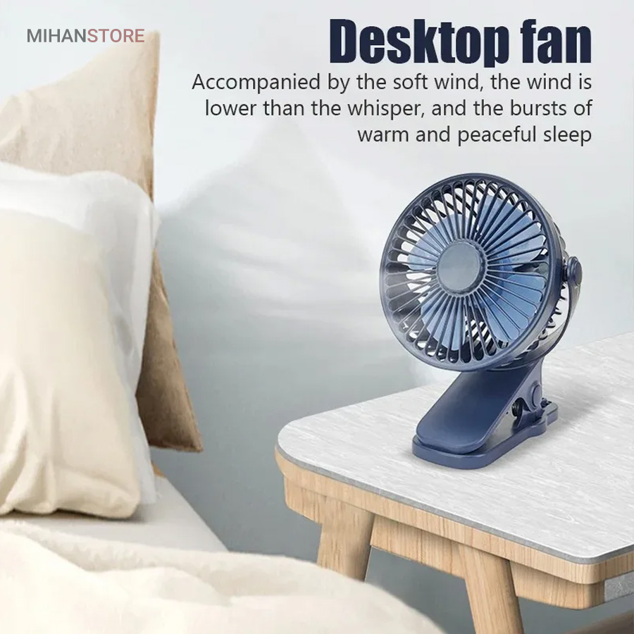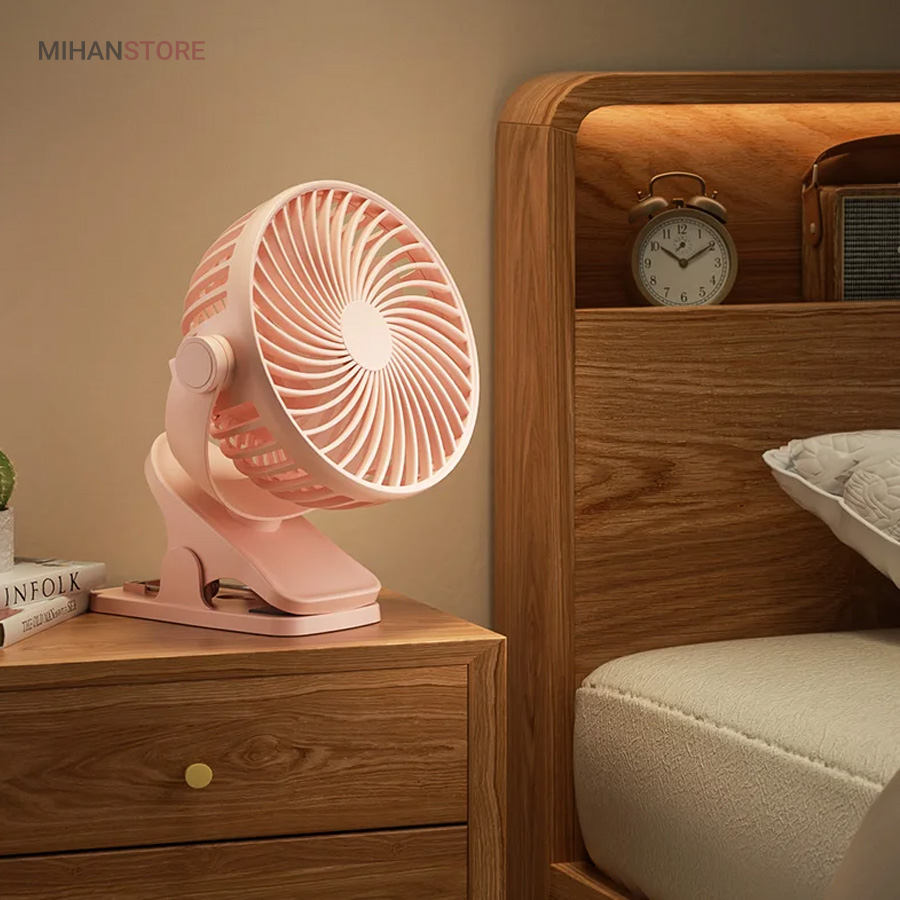 این پنکه می تواند گزینه مناسبی برای زمانی باشد که شما به برق دسترسی ندارید و یا برق رفته است. باطری این پنکه شارژ می شود و می توانید از آن بدون نیاز به اتصال مداوم به برق استفاده کنید. قدرت پرتاب هوا توسط پره های این پنکه با توجه به ساخت متفاوت بسیار بالا است و گردش هوای مناسب و قوی تری ایجاد می کند.این پنکه قدرت انتخاب سه سرعت را به فرد می دهد که با توجه به شرایط فرد انتخاب می کند کدام سرعت را تنظیم کرده و استفاده کند.دارای گیره اتصال برای متصل نمودن به میز یا دستگیره و یا دسته صندلی یا داخل ماشیناین پنکه از سایز خوبی برخوردار است که می توان آن را داخل کیف قرار داده و با خود حمل کنید.یکی دیگر از ویژگی های این پنکه حالت چرخش 360 درجه آن است که با توجه به نیازتان می توانید جهت آن را تنظیم کنید. این پنکه دارای LED در داخل پنکه می باشد که هنگام کار کردن زیبایی خاصی به محصول می بخشد.