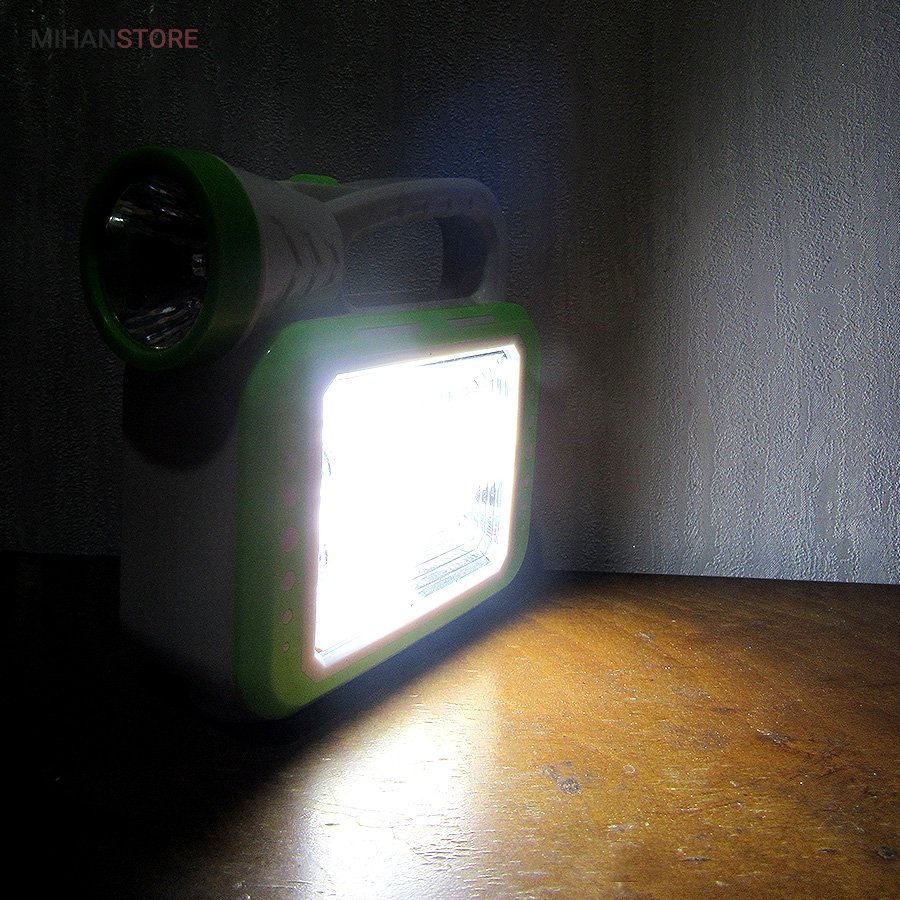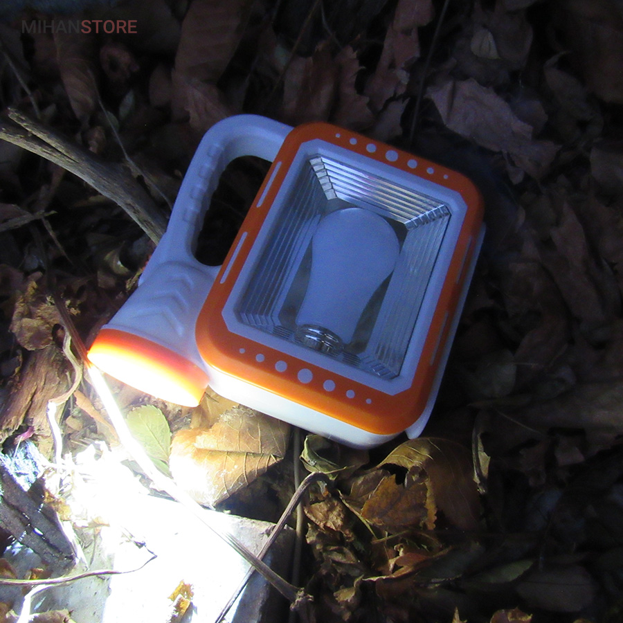 در ابتدا باید بگوییم که چراغ خورشیدی اضطراری قابل شارژ Searchlight Lamp از دو قطعه که شامل چراغ روشنایی COB و LED و پنل خورشیدی تشکیل شده است. اولین بخش این محصول، چراغ قوه بسیار قوی که پرتاب نور قابل توجهی را دارد است دومین بخش چراغ کنار که فضای بیشتری را روشن میکند که در ابعاد12*12 سانتی متر با وزن سبک طراحی شده است. همین وزن سبک و ابعاد جمع و جور یک ویژگی مثبت برای چراغ روشنایی اضطراری محسوب می شود که خیلی راحت می توانید آن را با خود حمل کنید. ویژگی قابل توجه این است که شما اگر در کمپ هستید و دسترسی به برق ندارید این چراق دارای پنل خورشیدی است و خود به خود به وسیله نور خورشید شارژ میشود و شب براحتی قابل استفاده میباشد.و این محصول قابلیت شارژ از طریق برق شهری را هم دارد و همراه چراغ کابل شارژ نیز ارسال میشود.