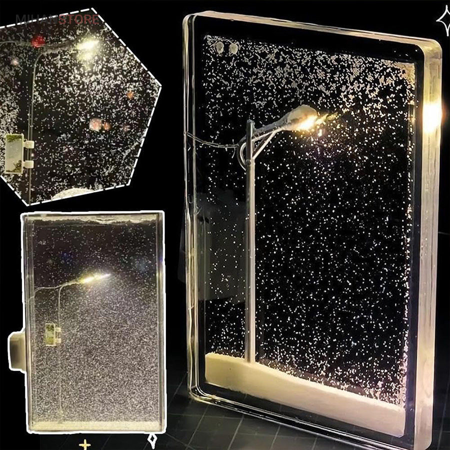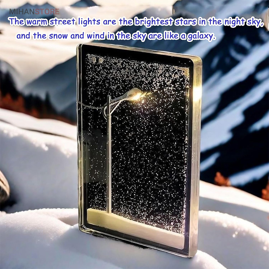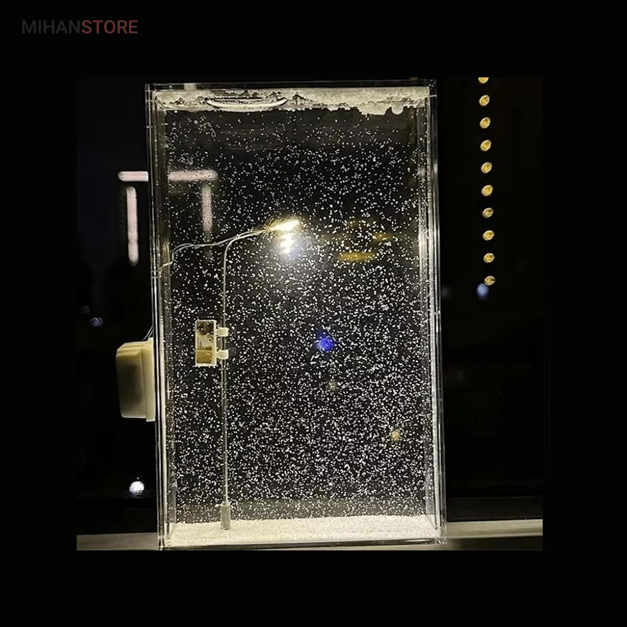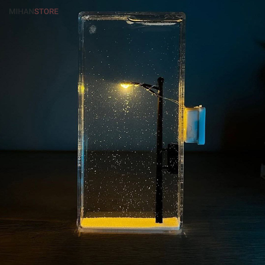طراحی منحصربه‌فرد و خلاقانه: شبیه‌سازی دقیق یک شب برفی با تیر چراغ برق روشن، مناسب برای عاشقان دکورهای خاص و هنری.