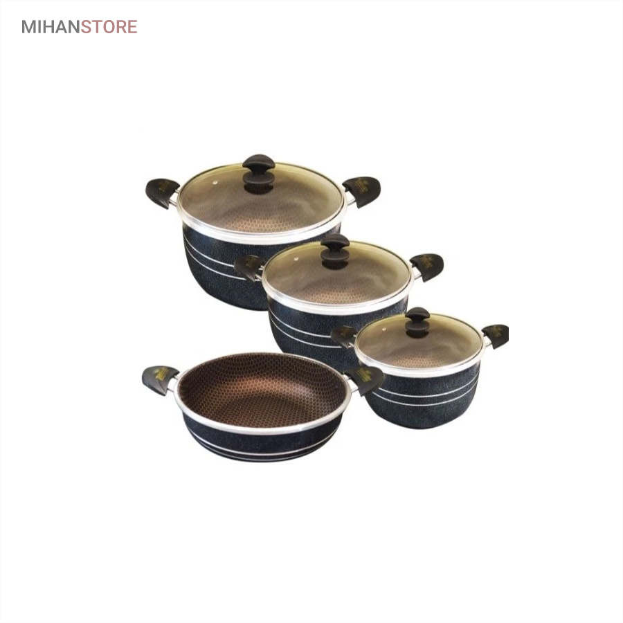 میهن استور - خرید پستی سرویس قابلمه و تابه لانه زنبوری 7 پارچه هلنا