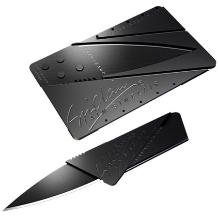 چاقو کارتی Sin Clair اولین چاقو تولید شده در ابعاد یک کارت اعتباری (عابر بانک) می باشد که دارای سه حالت مبتکرانه و جدید برای تاشدن و تغییر شکل دادن به چاقو از اندازه کارت اعتباری به سایز یک چاقوی کاربردی می باشد که می توانید آن را همیشه در کیف پولتان به همراه داشته باشید. وزن چاقو کارتی Sin Clair تنها 18 گرم بوده در عین حال فوق العاده با کیفیت و تیز می باشد و استفاده از آن نیز بسیار آسان است.