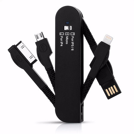 دستگاه USB همه کاره در واقع همان کابل اتصال موبایل شما به USB کامپیوتر است که دارای طراحی جدید و بسیار شکیل می باشد که شما می توانید آن را همیشه همراه خود داشته باشید و در مواقع نیاز از آن استفاده نمایید. از این وسیله می توانید جهت انتقال دیتا و یا شارژ گوشی موبایل (با استفاده از کامپیوتر و یا پاور بانک و یا برق خانگی) استفاده نمایید. از ویژگی های این دستگاه دارا بودن 3 فیش مخصوص گوشی ها و تبلت های اندروید، آیفون (سری قدیمی و جدید) و آیپد می باشد، یعنی با یک دستگاه شما می توانید انواع موبایل ها و تبلت ها را توسط USB به کامپیوتر وصل کرده و موبایل یا تبلت خود را شارژ کنید و یا فایل های کامپیوتر و موبایل را جا به جا کنید. از ویژگی های دیگر این دستگاه سبک بودن و قابلیت حمل آسان است. دستگاه USB همه کاره در رنگ های مشکی، سفید، آبی و قرمز عرضه شده است که شما هنگام تکمیل فرم سفارش می توانید رنگ مورد نظر خود را انتخاب کنید. از ویژگی های این محصول می توان به قدرت سریع انتقال اطلاعات و ثابت نگهداشتن سیگنال و ضد نوسانی بودن آن اشاره کرد و اینکه هسته آن از سیم های نازک اکسیژن آزاد مس اندود ساخته شده است.