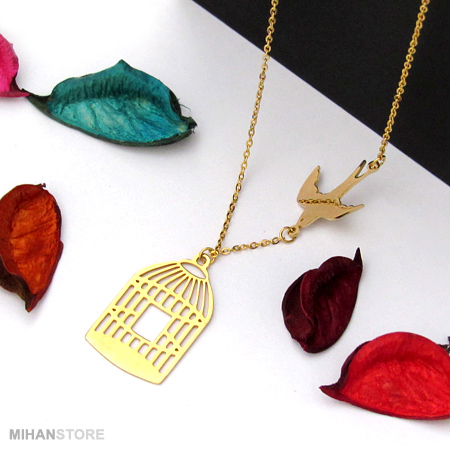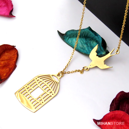 - طراحی نوین بر گرفته شده از گردنبند مرغ آمین در رنگ طلایی