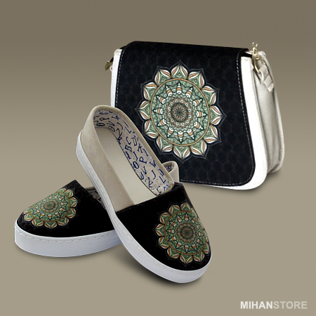 فرهنگ و تمدن هر کشوری نشان دهنده اصالت و قدمت آن است. امروزه مردم کشورهای غربی با چنگ و دندان پاسدار فرهنگ نه چندان قدمتدار خود هستند آنجا که ایران ما دارنده فرهنگی عمیق پر از نقش و نگار و خصوصیات اخلاقی ویژه است. این ست کیف و کفش علاوه بر جادار بودن کیف، و کفش فوق العاده راحت دارای نقش و نگاری است که برگرفته از فرهنگ ایرانی است. زیبایی این طرح نه تنها در ایران بلکه در تمام دنیا مورد پسند همگان است و زیبایی و جذابیت خاصی دارد که تحسین همگان را بر می انگیزد. کفش این ست در سایزبندی 37 الی 40 عرضه شده است که هنگام تکمیل فرم سفارش می توانید سایز مورد نظر را انتخاب کنید.